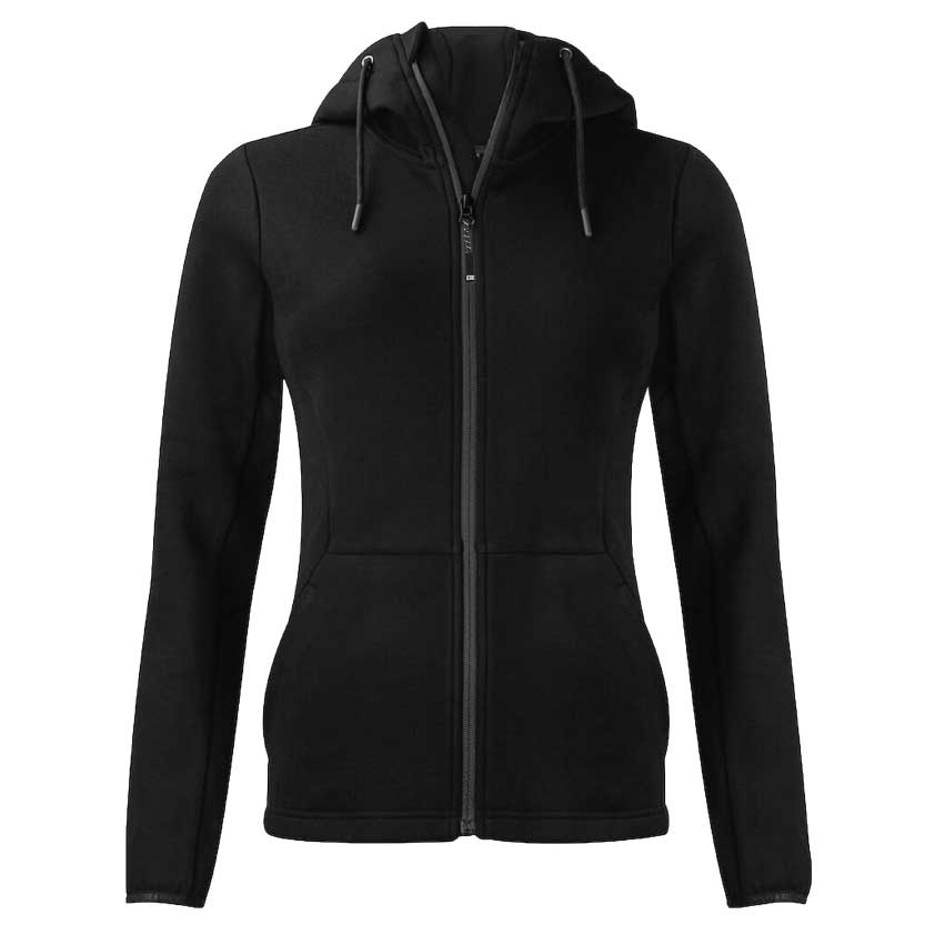 Hoodtröja i skönt, stretchigt, dubbelstickat lättviktsmaterial – ett perfekt året-runt plagg. Det tekniska materialet är gjort av certifierad återvunnen polyester, rayon samt tillförd elastan för bra stretch. Den höga kragen skyddar mot kallt väder. Tröjan har två fickor framtill med dragkedjor. CUTTER & BUCK-loggan är inbroderad längs huvans ytterkant.