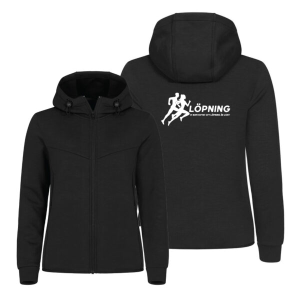 En huvtröja i ett mjukt bondat tyg där polyestern återvinns. Utrustad med två dolda sidfickor med dragkedja och två innerfickor. Muddar i tyg och nederkant med elastiskt band. Låsbar dragsko för en justerbar huva.