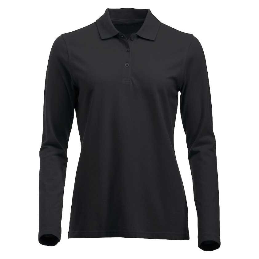 Långärmad pikétröja med 3 ton-i-ton knappar i knappslån. Ärmavslut med ribb. Sprund i sidorna.